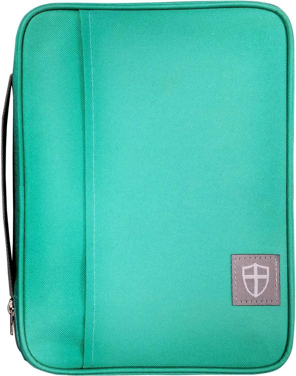 These oxford cloth cases protect the Bible while holding study accessories. Two sizes and three colors to choose from. Each with outside pocket, Armor Of God cross emblem zipper-pull and label, and 4 pen loops inside from cover.
