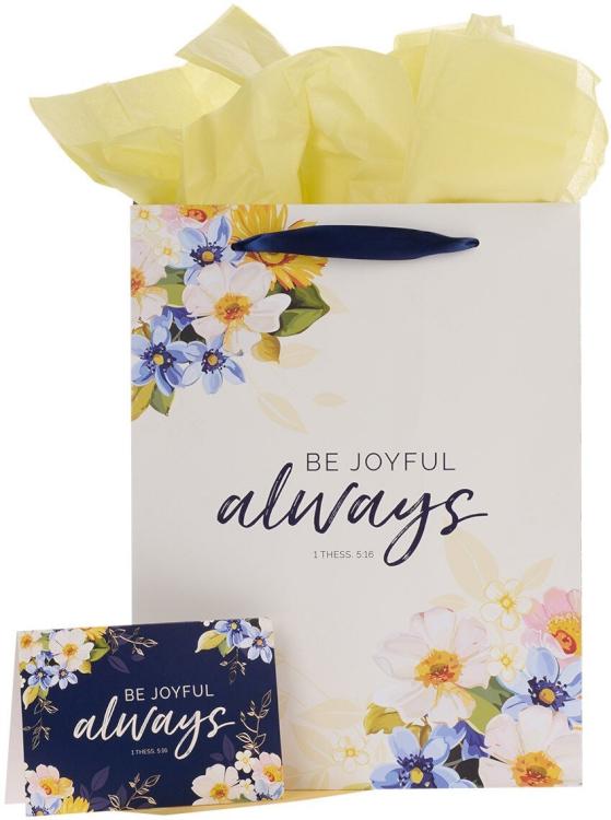 You are sure to put a smile on a loved one s face when you present your special gift in this sweet bag bedecked with sunny flowers and a cheery reminder from Scripture to be joyful always (1 Thessalonians 5:16). Whether you re celebrating a birthday, comforting a friend who s sick, or saying thank you to someone who blessed you, this little bag with a big word of encouragement will deliver!