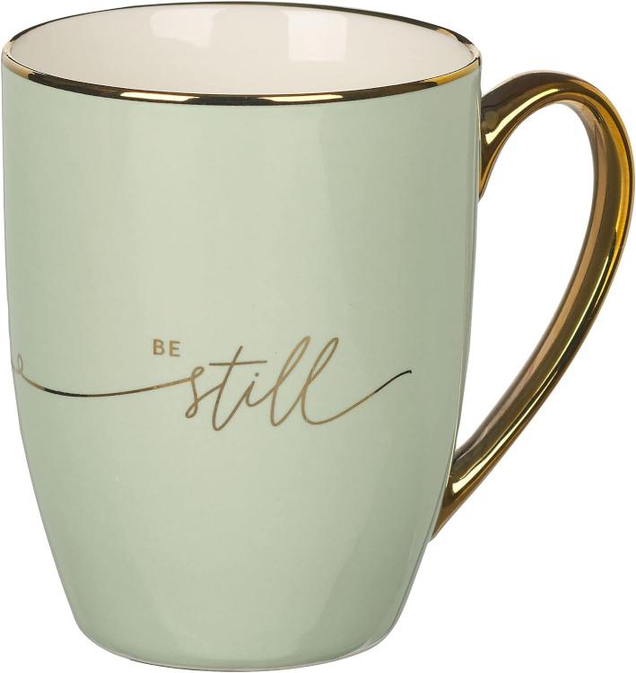 Joshua 1:9A thin gold foil rim separates the crisp white interior from the navy exterior. An oversized handle extends from the side and comfortably fits a man’s hand, offering a firm grip. With its generous 14-ounce capacity, the mug will hold plenty of liquid. Handwashing is recommended to keep the delicate gold foil in good condition.