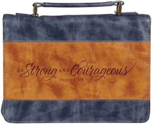 Classic Vegan Leather Bible Cover Carry Case for Men & Women: Strong & Courageou