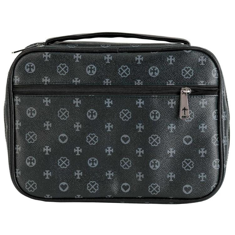 *Charming bible cover features rich matte black coloring with cross and heart pattern