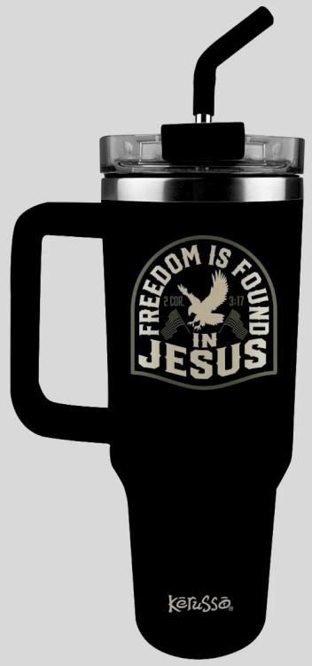 Kerusso 40 oz Stainless Steel Mug With Straw – Freedom Is Found
