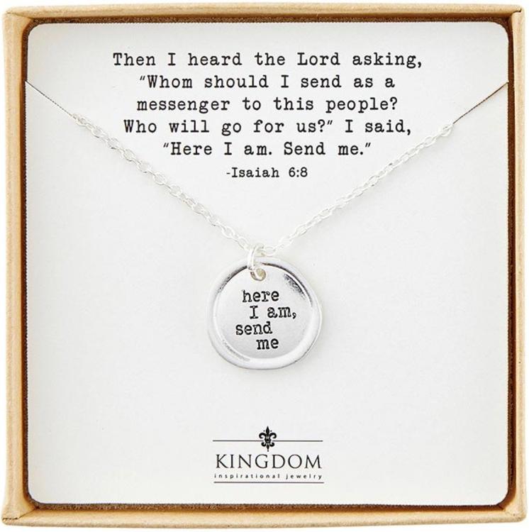 These trendy wax seal pendants are an incredible value! Debossed with “here I am, send me”, this is a simple and gorgeous gift for any woman on your shopping list.