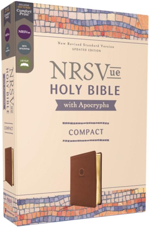 The perfect on-the-go Bible. With an easy-to-read typeface and a slim size, the NRSVue Holy Bible with Apocrypha, Compact invites you to explore the depth and beauty of Scripture anywhere and at any time. It elegantly unites the portability you’d expect in a compact Bible with a beautiful and readable typeface.The Apocrypha is placed between Old and New Testaments, a nearly four-hundred-year-old tradition originating with the 1534 German Luther Bible. This practice separates the Apocrypha from the 66-book canon while allowing readers to benefit from its spiritual wisdom, exemplary piety, and historical insight.Skillfully crafted for the New Revised Standard Version, Updated Edition (NRSVue) text, Zondervan’s exclusive Comfort Print(R) typeface provides a smooth reading experience that complements the foremost Bible translation vetted by Protestant, Catholic, Orthodox, Evangelical, and Jewish scholars. Continuing the legacy of the NRSV, the NRSVue aims to faithfully serve the church in personal spiritual formation, in the liturgy, and in the academy. With revisions based on new textual evidence, historical insights, and linguistic precision, this updated edition delivers a translation of Scripture based on meticulous care for accuracy and readability.Features:The full text of the New Revised Standard Version, Updated Edition, vetted by an ecumenical pool of Christian academics and renowned for its beautiful balance of scholarship and readabilityApocrypha between the Old and New TestamentsPortable size – slightly larger than a 4×6 notecardElegant two-color page design in a double-column formatPresentation pageSatin ribbon markerExclusive Zondervan NRSVue Comfort Print typeface