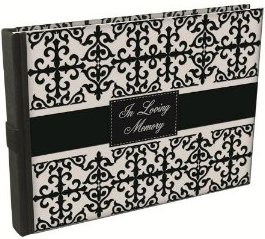 In Loving Memory Guest Book – Black and White Flocked Cover Design – Condolence