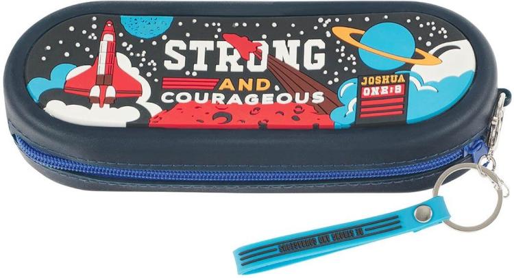 Inspirational Silicone Pencil, Pen & Marker Case for Boys: Strong & Courageous E