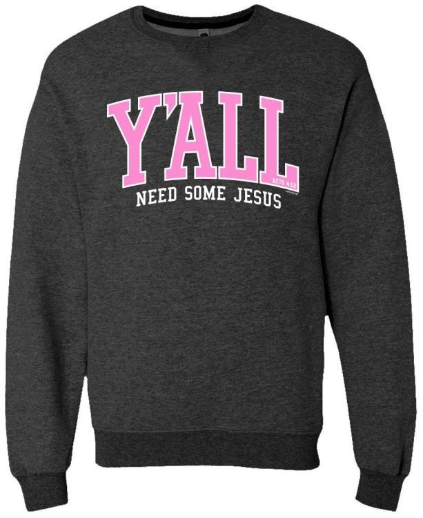 With its eye-catching design and soft fleece interior, this sweatshirt is a perfect blend of comfort and conviction. Whether you re wearing it to a football game, Bible study, or your favorite BBQ joint, it s a conversation starter that puts Jesus at the center. Faith, friendliness, and boldness that s what Y ALL stands for when you re rocking this classic Christian sweatshirt.