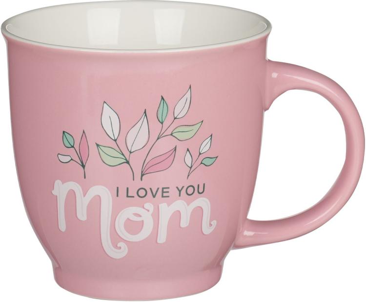 The I Love You Mom Pink Leaves Ceramic Coffee Mug is part of the Love You Mom Daisy Collection, designed to honor mothers for their hard work. This collection includes a wirebound journal, a stainless steel travel tumbler with a reusable straw, a metal keychain, a magnetic notepad and pen set, and a coordinating gift bag.