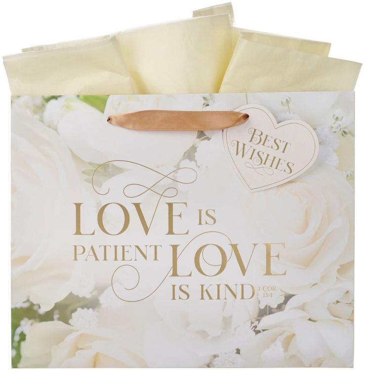 The Love White Rose Large Landscape Gift Bag is the perfect way to celebrate the marriage commitment of a new couple.