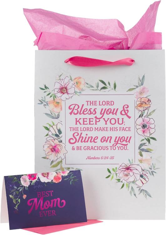 Show your mom how much she means to you while showering her with blessings when you package her gift in the Bless You and Keep You Pink Floral Large Portrait Gift Bag with Card Set.