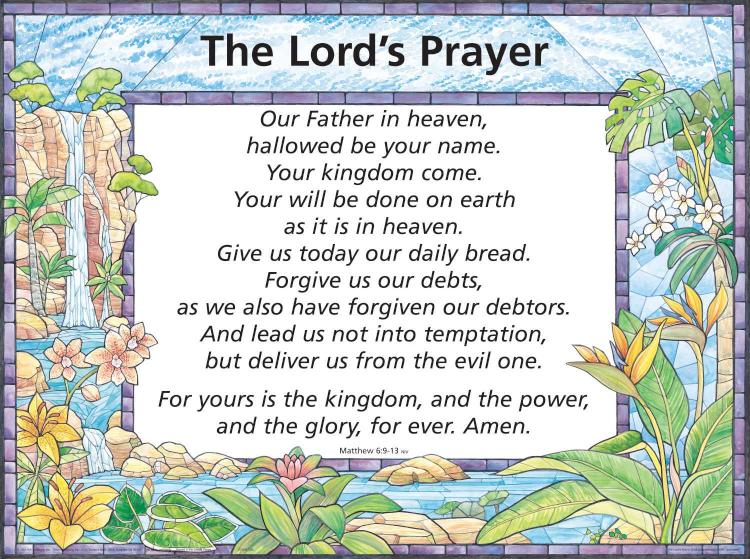 The Lord’s Prayer teaches the importance of praying for God’s will, for relying on him for our daily needs, for asking for forgiveness, and for help in times of temptation. Reproducible worksheets on the back include a coloring page of the prayer, and a prayer journal to encourage children and adults to pray and keep track of God’s answers. Another worksheet uses the Lord’s Prayer as a model for students to use to write their own prayers. Know the the four key parts of the Lord’s Prayer.