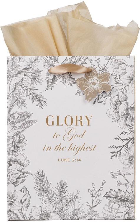Pack your holiday gifts in elegant~ monotone bags like the Glory to God Winter Botanical Medium Gift Bag. This gorgeous gift bag~ with its reverent sentiment~ acknowledges the true spirit of Christmas.