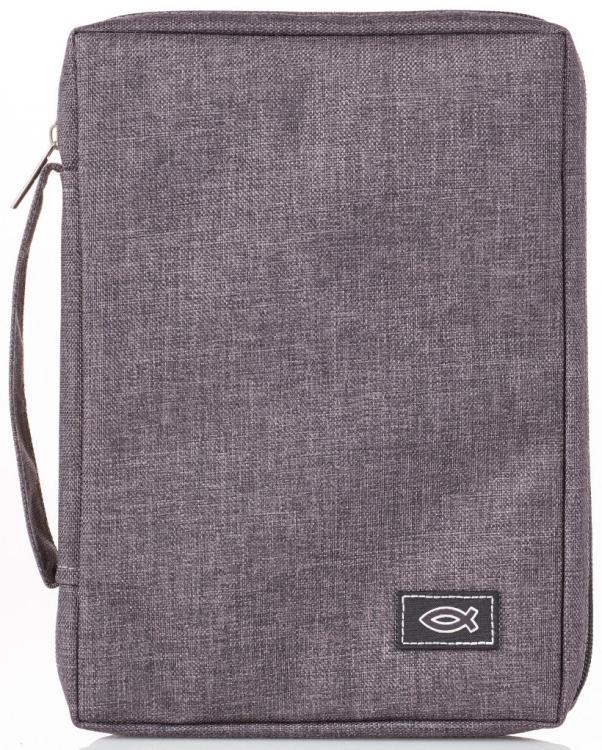 The Gray Poly-canvas Bible Cover with Ichthus Fish Badge will protect your Bible whether you’re toting it to church~ small group or a coffee date with a friend.