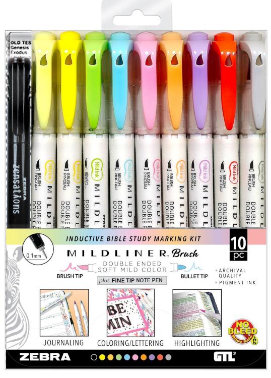 The soft, mild colors featured in the Mildliner Brush Marking Kit are perfect for Bible study and creative time.