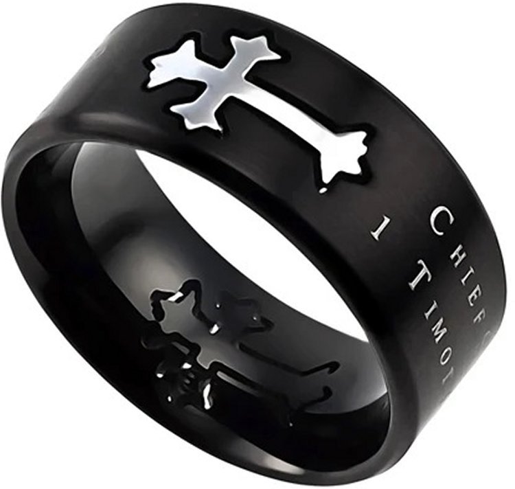 $21.95Stunning high polish stainless steel band tapers from a petite 5 mm heart cut top to a 3 mm back. Black enamel filled engraving wraps entire band from one end of the heart to the other reading “True Love Waits – 1 Timothy 4:12”