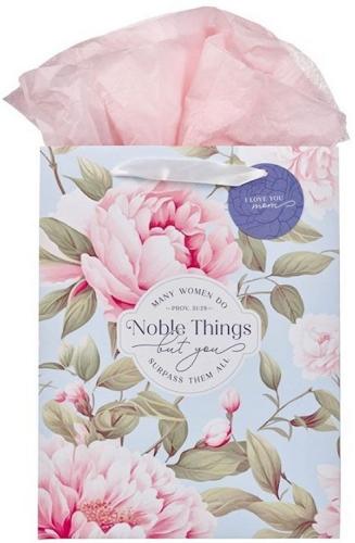 Noble Things Pink Peony Large Portrait Gift Bag Proverbs 31:29