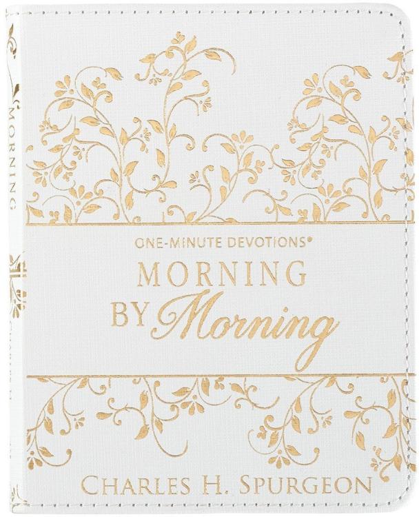 The Morning by Morning White Faux Leather One-Minute Devotions has long been a favorite devotional because of the simple yet profound~ practical~ and deeply spiritual insights from the Prince of Preachers~” Charles Haddon Spurgeon.”