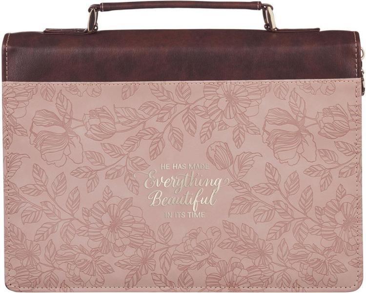 Let the Everything Beautiful Blush Floral Faux Leather Fashion Bible Cover remind you to trust God’s perfect timing even when life does not make sense. This elegant blush pink Bible carrier will encourage you to seek God’s direction through His Word every time you use it.