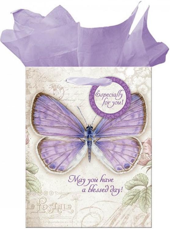 Purple Butterfly Gift Bag, Card, & Tissue Paper Blessed Day Numbers 6:24, Small