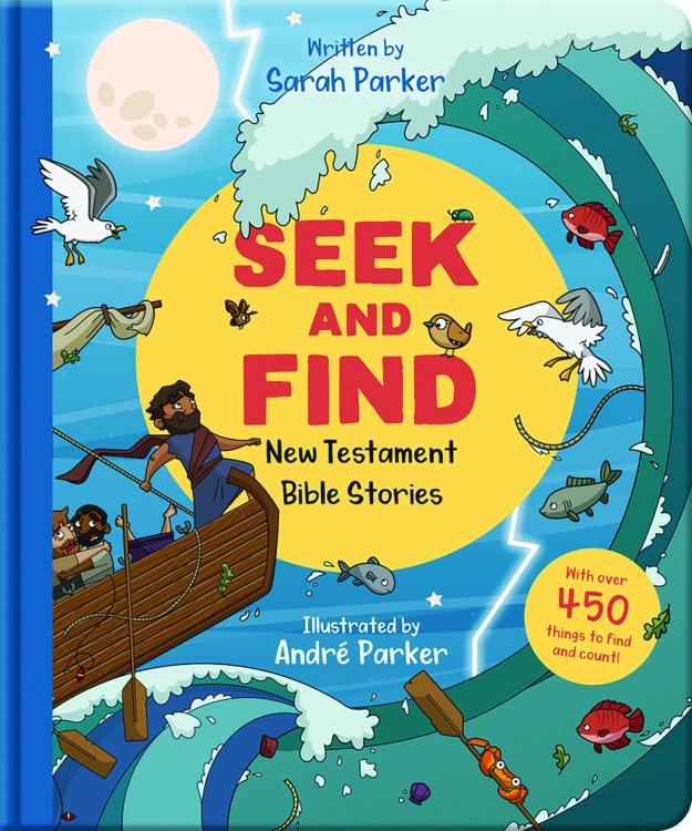 This beautifully illustrated Seek and Find book is packed full of all your favorite New Testament stories. It’s teeming with fun and exciting things to find–from faithful friends to scary Romans, and grumpy Pharisees to a frightened octopus!