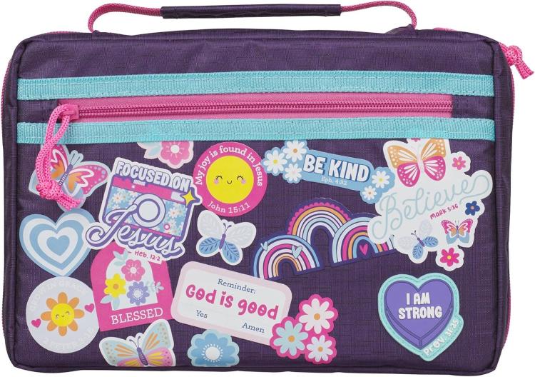 Convenient Accessory for Stationery Storage: The lay-flat tightly stitched handle offers a firm hold and is easy to grip and carry. The pink rope zipper pull closure ensures your Bible is tightly secured. Your little one can travel worry-free to church, class, school, & school and be encouraged by the fun inspiring Scripture design featuring flowers, smilies, rainbows, hearts & butterflies. Messages of kindness, grace, God’s goodness & love, & more are scattered over the front of the Bible case.