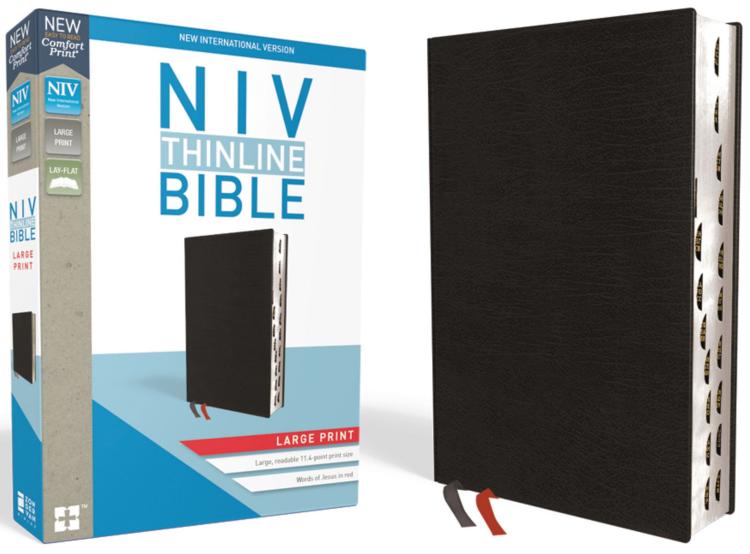 $42.99With a new, easy-to-read typeface, the NIV Thinline Bible, Large Print invites you to linger over, engage with, and deeply explore God’s Word. Expertly designed for the New International Version (NIV) text, Comfort Print(R) delivers a smooth reading experience that complements the most widely read contemporary-English Bible translation. Measuring less than an inch thick, it is the perfect on-the-go Bible to take to church, your Bible study group, work, or travel.