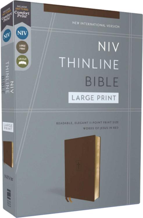 Easy to Read. Easy to Carry.With an easy-to-read typeface and a slim size, the NIV Thinline Bible, Large Print, invites you to deeply explore God’s Word anywhere and at any time. Expertly designed for the New International Version (NIV) text, Zondervan’s exclusive Comfort Print(R) typeface delivers a smooth reading experience that complements the most widely read contemporary-English Bible translation. Measuring only an inch thick, it is the perfect on-the-go Bible to take to church, your Bible study group, work, or travel.Features:Complete text of the accurate, readable, and clear New International Version (NIV)Only an inch thickDouble-column formatPresentation pageTwo satin ribbon markersWords of Jesus in redLeathersoft cover lies flat when openExclusive Zondervan NIV Comfort Print typefacePrint size: 11