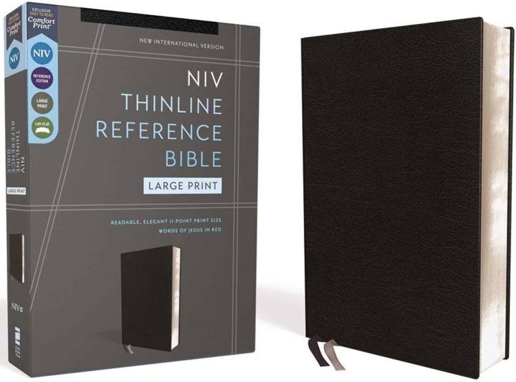 Easy to Read. Easy to Carry.The NIV Thinline Reference Bible, Large Print captures the depth and beauty of the Bible, in a take-anywhere size. Containing a helpful center-column reference system while measuring less than an inch thick, it is the perfect resource to carry to work, travel, church, and Bible study for on-the-go access to God’s Word. Expertly designed for the New International Version (NIV) text, Zondervan NIV Comfort Print(R) typeface delivers a smooth reading experience that complements the most widely read contemporary-English Bible translation.Features:The full text of the accurate, readable, and clear New International Version (NIV)Less than one inch thickCenter-column cross references-a helpful tool for connecting Scripture to other ScriptureNIV Concise Concordance with over 2000 word entriesEight pages of full-color mapsWords of Jesus in redDouble-column formatPresentation pageTwo satin ribbon markersEuropean bonded leather cover lies flat when openExclusive Zondervan NIV Comfort Print typefacePrint size: 11