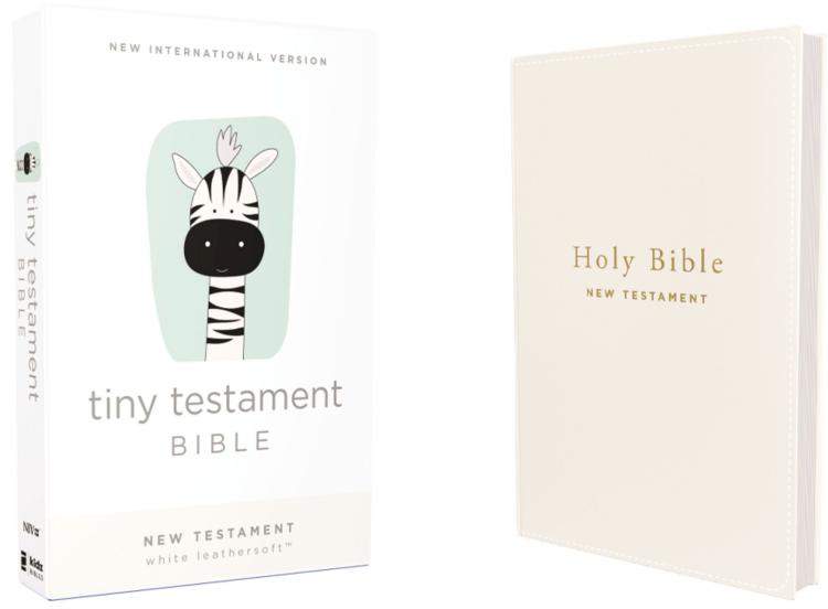 Pocket-sized New Testament ideal for baby showers, baptisms, christenings, and baby dedications.With its tiny size and beautiful LeathersoftTM binding, the NIV Tiny Testament will look adorable as the perfect meaningful addition to a baby’s nursery and make a lovely keepsake as they grow. Featuring the New International Version (NIV) of the Bible, today’s most popular modern-English translation and Zondervan’s exclusive NIV Comfort Print(R) typeface for ease of readability.Features:Complete New Testament text of the accurate, readable, and clear New International Version (NIV)Pocket size: 2.75 x 4.25 inchesTwo-piece gift box perfect for gift givingBeautiful Leathersoft cover with gold foil stampingArticles to encourage spiritual growth:Getting to Know JesusPromises from the BiblePerspectives from the BibleDouble-column formatExclusive Zondervan NIV Comfort Print(R) typeface for enhanced readabilityPrint size: 5The New International Version (NIV) is the world’s bestselling modern-English Bible translation-accurate, readable, and clear, yet rich with the detail found in the original languages. The NIV is the result of over 50 years of work by the Committee on Bible Translation, who oversee the efforts of many contributing scholars. Representing the spectrum of evangelicalism, the translators come from a wide range of denominations and various countries and continually review new research to ensure the NIV remains at the forefront of accessibility, relevance, and authority. Every NIV Bible that is purchased helps Biblica translate and give Bibles to people in need around the world.