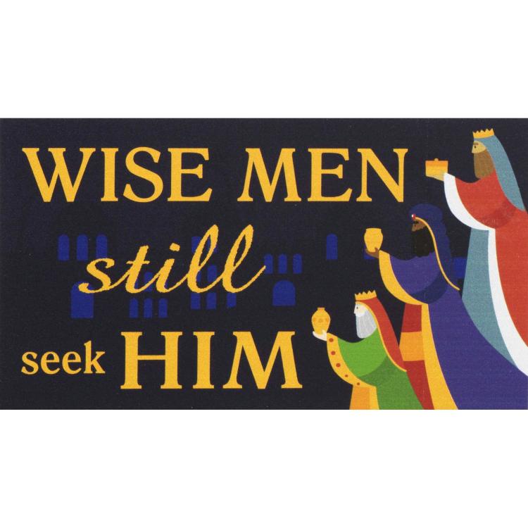 Vinyl Magnet Displays Whimsical Wise Men With Text: Wise Men Still Seek Him. Size Is 5 Wide x 2 .75 High. Comes In A Clear Header Bag.